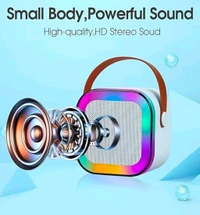 KMJSA Portable Bluetooth Speaker with LED Lights, White, RGB Color-Changing Frame, Compact Square Design, Carrying Handle/Blue/Pink/Peach
